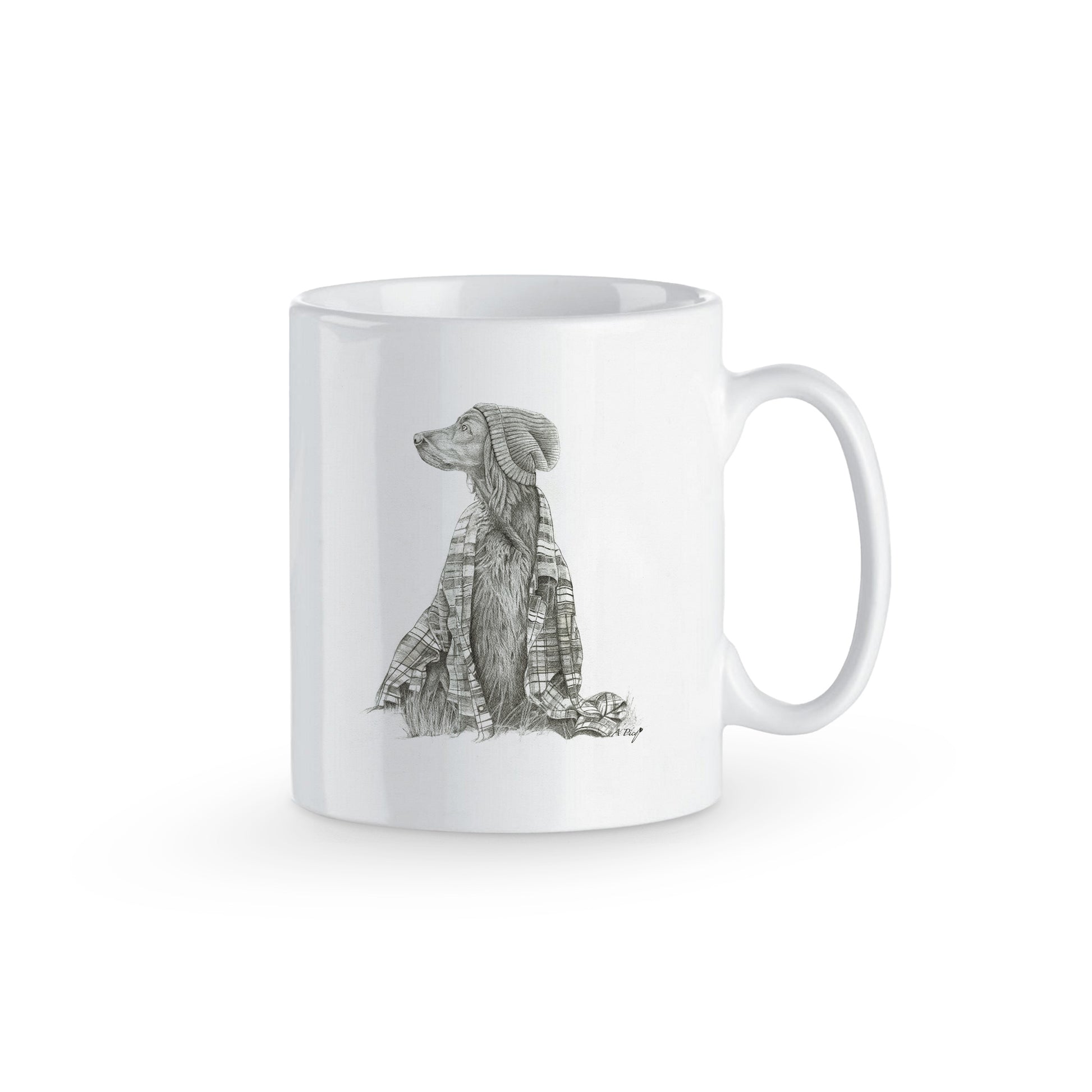 Ce dessin d'un chien avec un bonnet et couvert d'une chemise à carreaux respire l’originalité et la tendresse. L'alliance du regard de l’animal et de sa tenue chaleureuse apportent une touche décalée, idéal pour égayer votre intérieur avec un style unique.