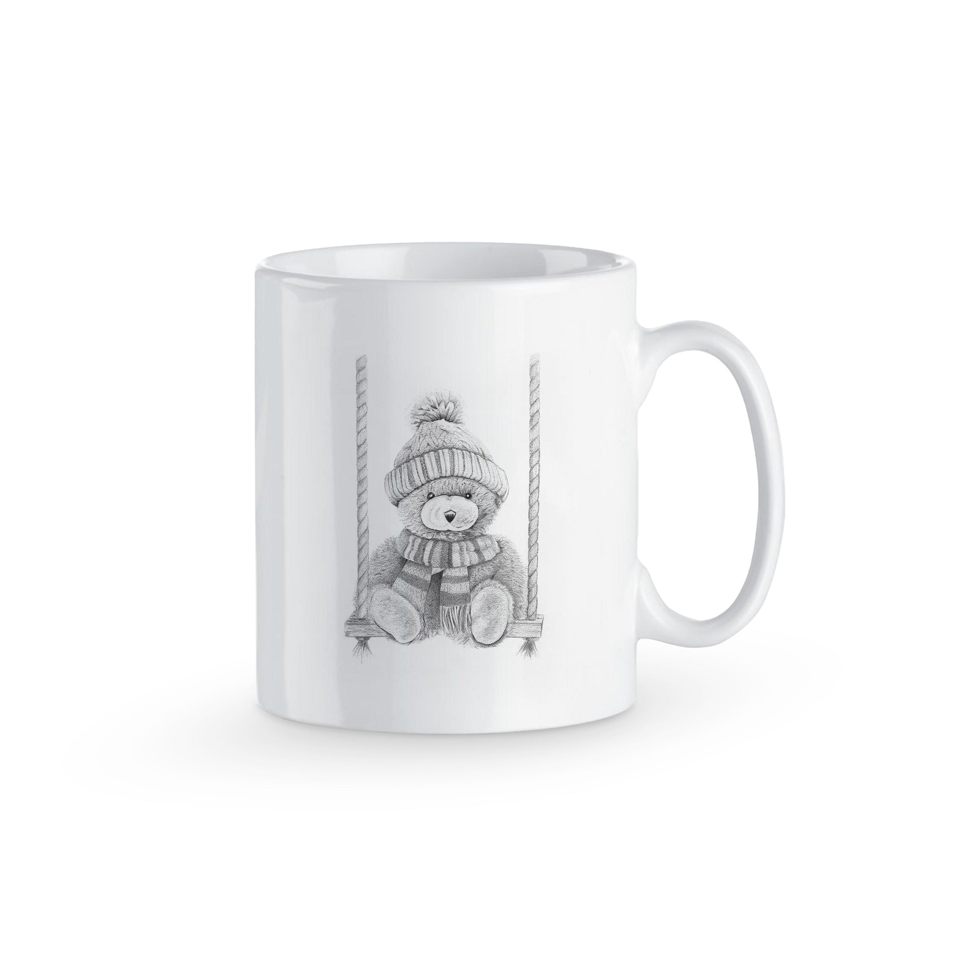 Le dessin intitulé "Ça balance" présente un ours en peluche en pleine action, maîtrisant l'art de la posture sur une balançoire. Bien emmitouflé, il saura apporter une touche de tendresse et de chaleur humaine à ce mug en céramique.