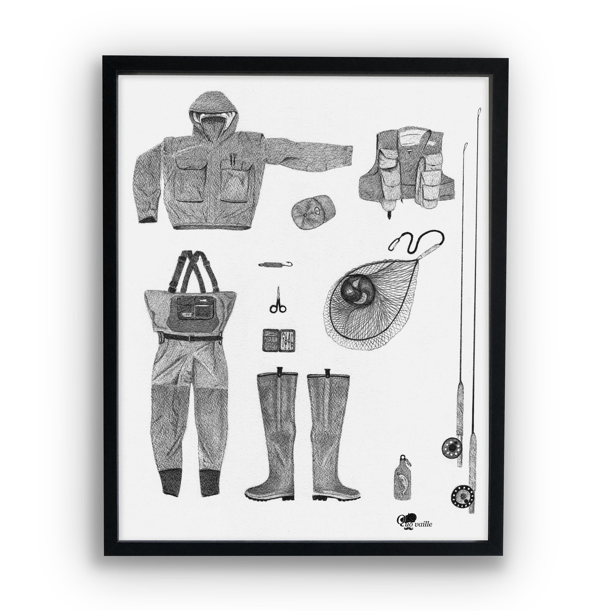 Ce dessin met en scène toute la panoplie du pêcheur, alors prêt pour une belle partie de pêche ? Imprimé sur papier de qualité et livré dans un emballage rigide, sans cadre.