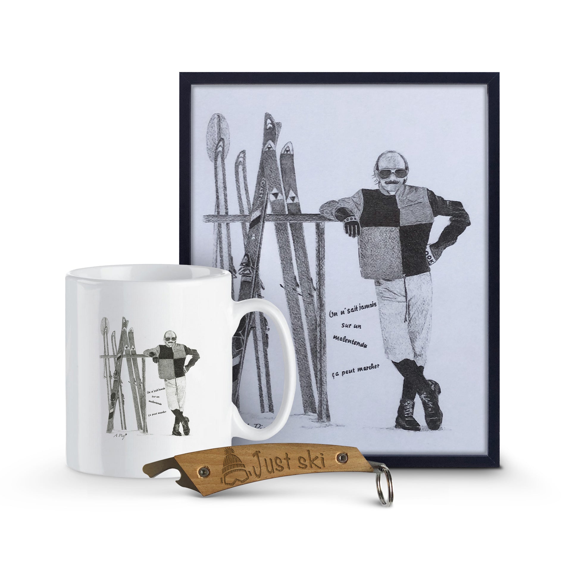 Pack composé d'une affiche avec cadre 21x30, d'un mug et d'un décapsuleur.